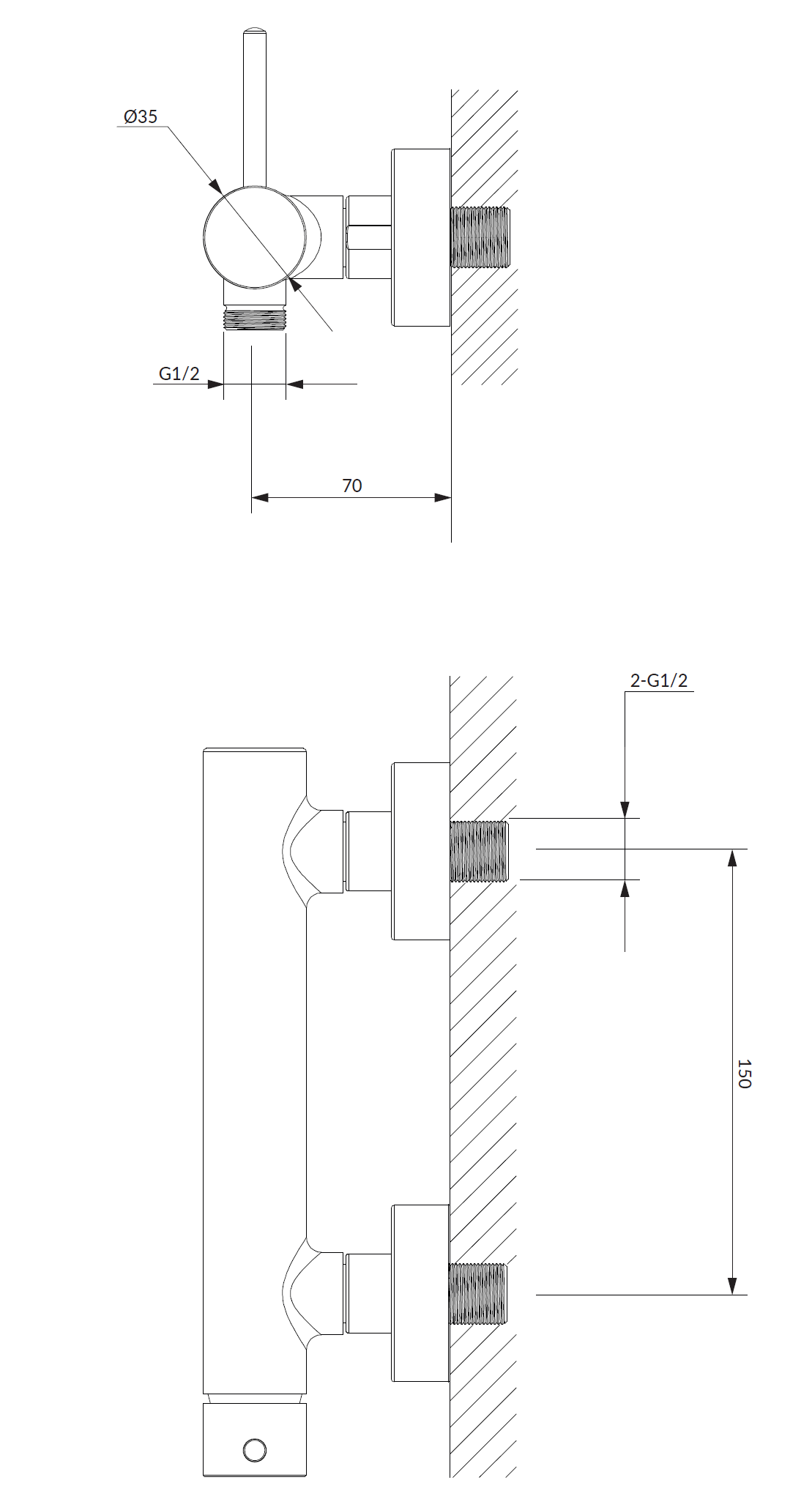 • Podłączenie prysznica: 1/2"