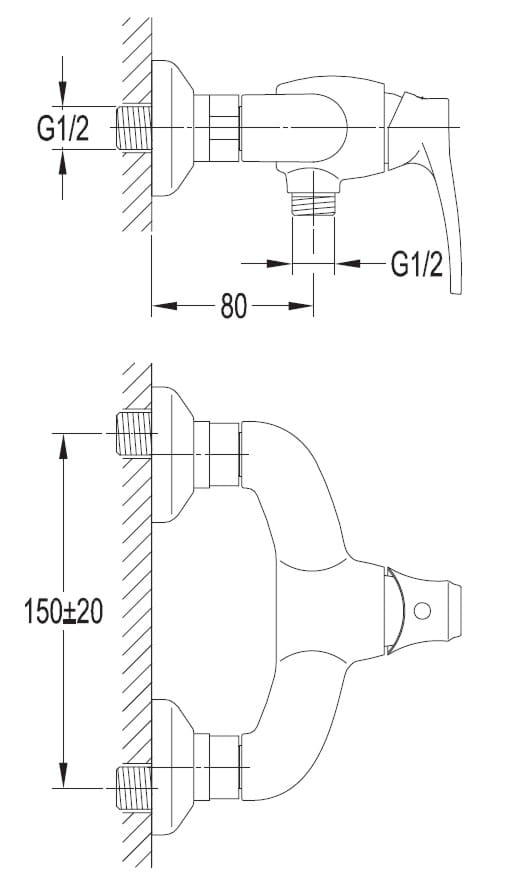• Podłączenie prysznica: 1/2"