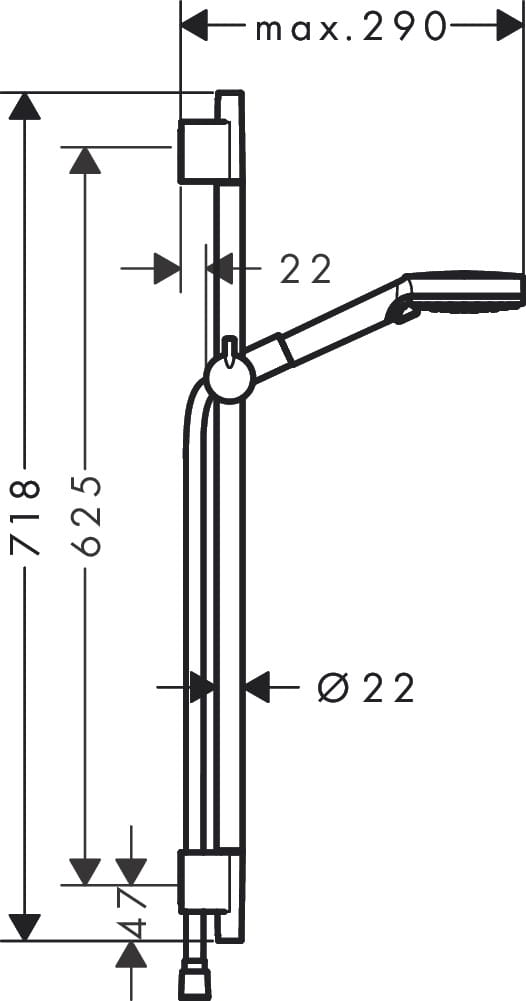 • średnica drążka prysznica: 22 mm