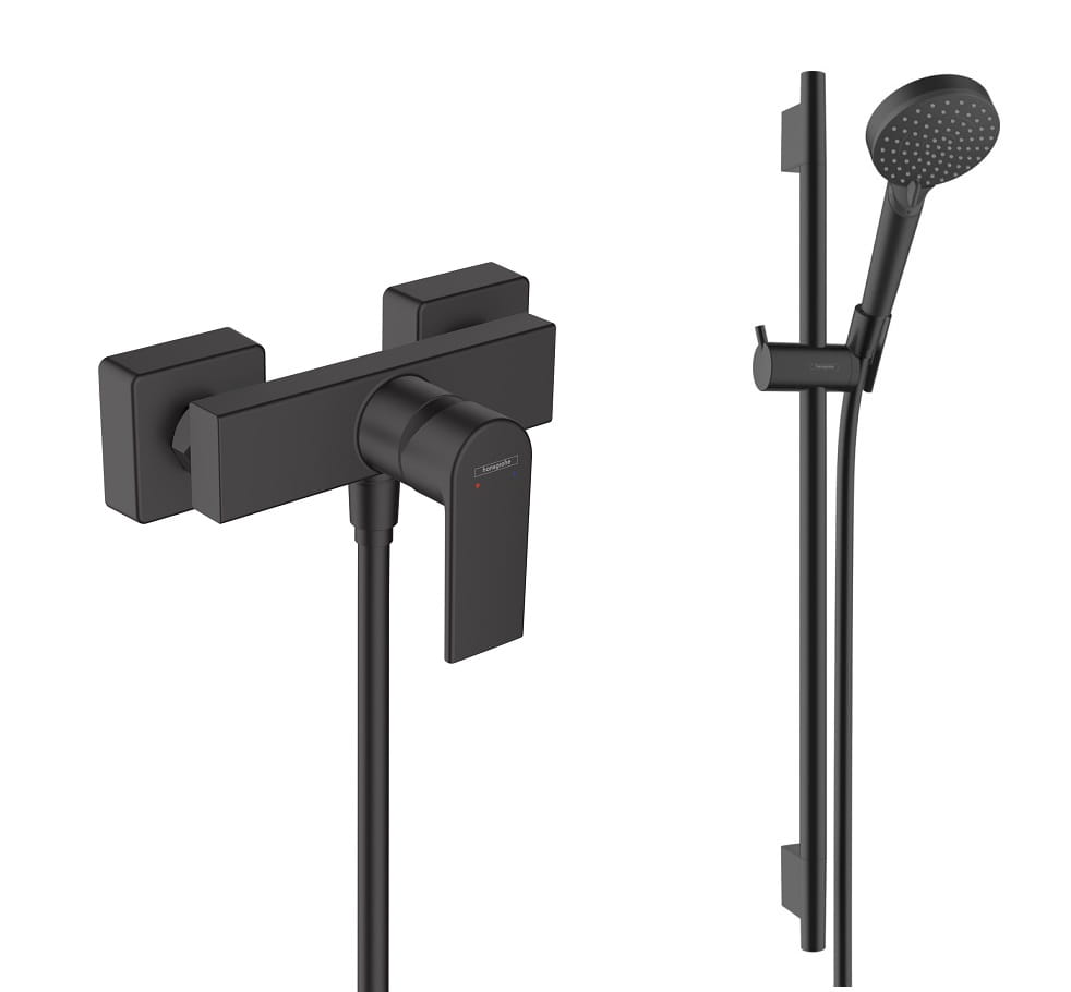 Bateria prysznicowa Hansgrohe Vernis Shape z zestawem prysznicowym Hansgrohe Vernis Blend czarny mat 71650670 + 26423670