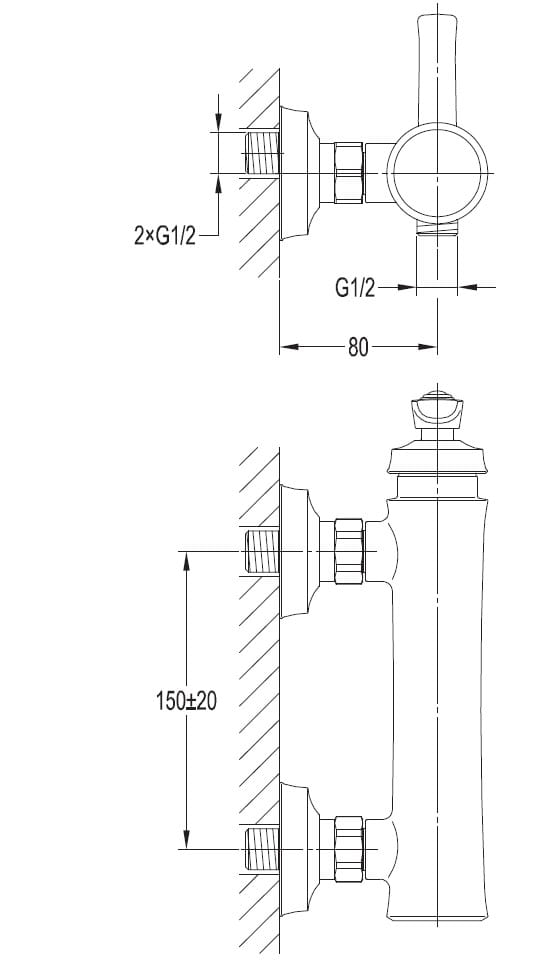 Bateria prysznicowa natynkowa złoto Omnires Armance AM5240GL