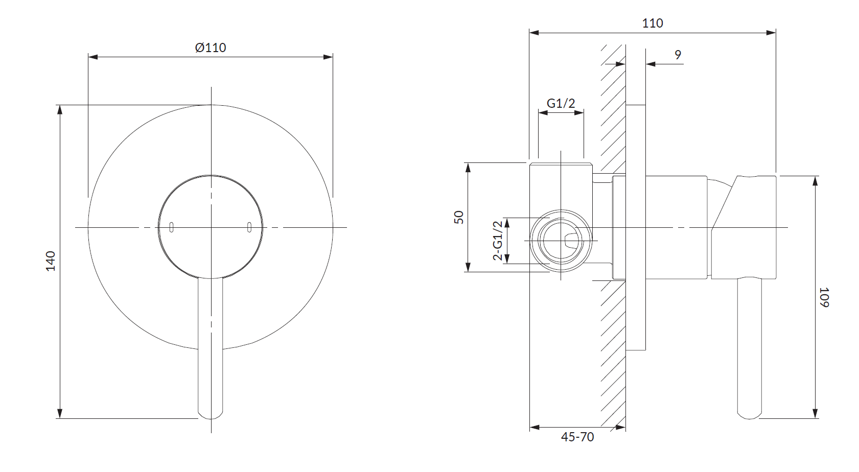 • dwa wejścia (na wodę ciepłą i zimną): 1/2”, jedno wyjście wody zmieszanej: 1/2”