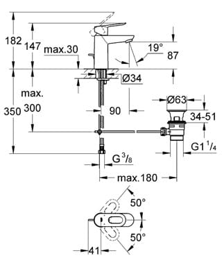 • zestaw odpływowy z drążkiem pociąganym, z plastikowym korkiem
