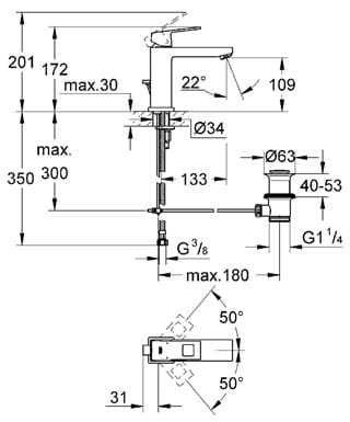 Bateria umywalkowa GROHE Eurocube 23445000