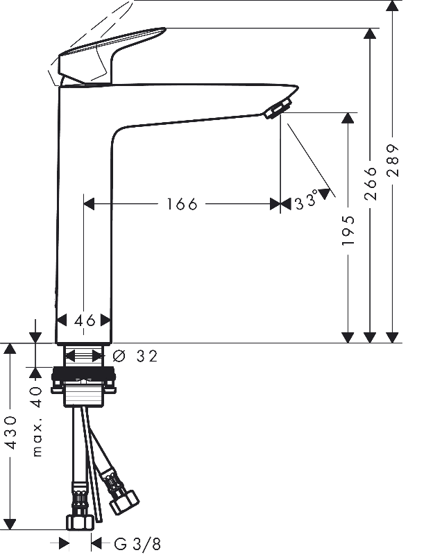 Bateria umywalkowa Hansgrohe LOGIS 190 bez zestawu odpływowego 71091000