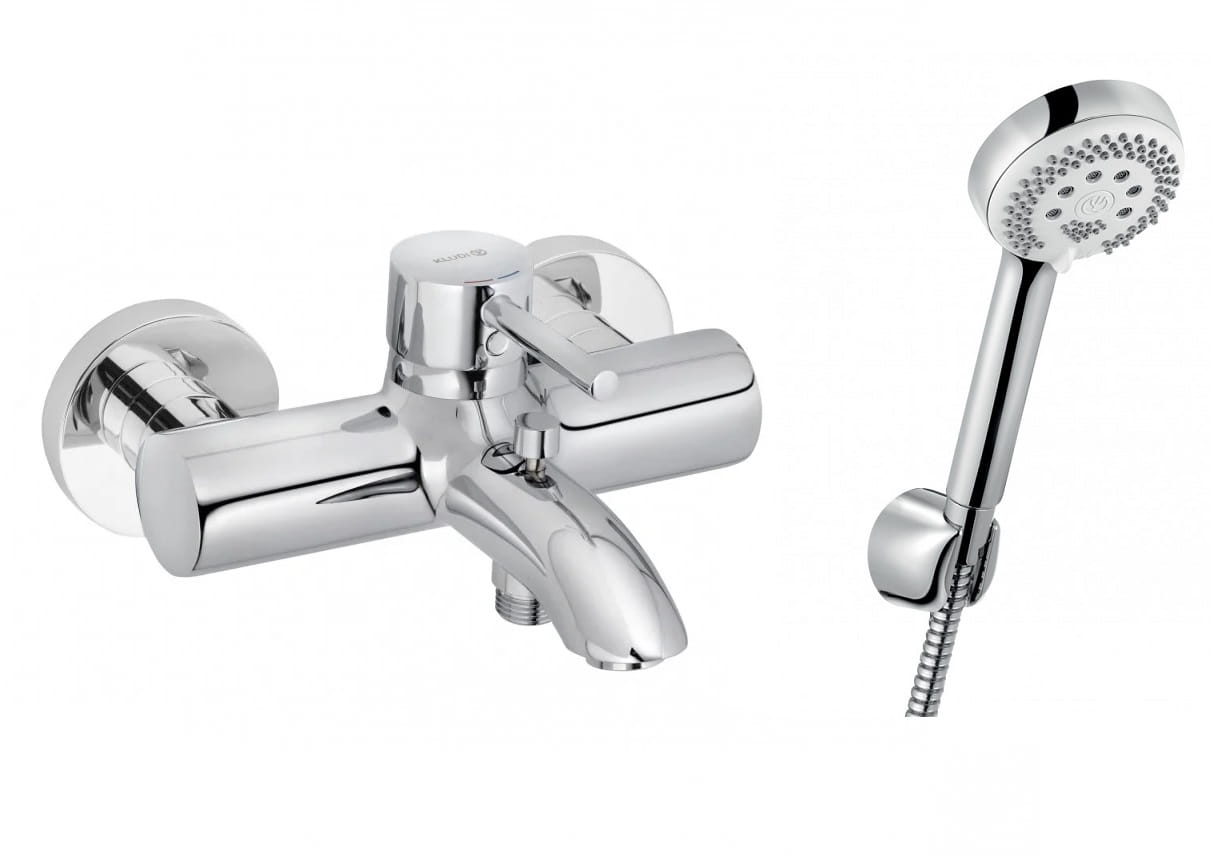 Bateria wannowa ścienna Kludi Bozz z zestawem prysznicowym Kludi Logo chrom 386910576 + 6803005-00