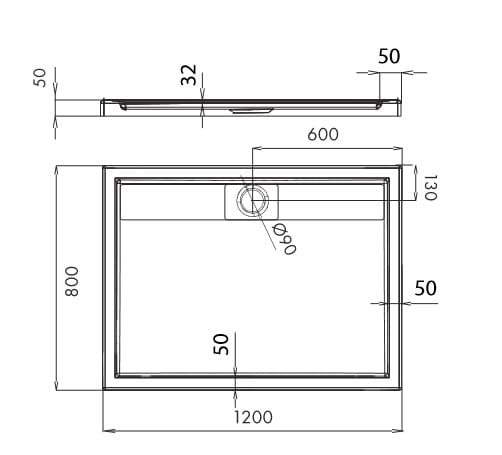 Brodzik prostokątny 80 x 100 x 3,2/5 cm Omnires Brooklyn 80/100/P