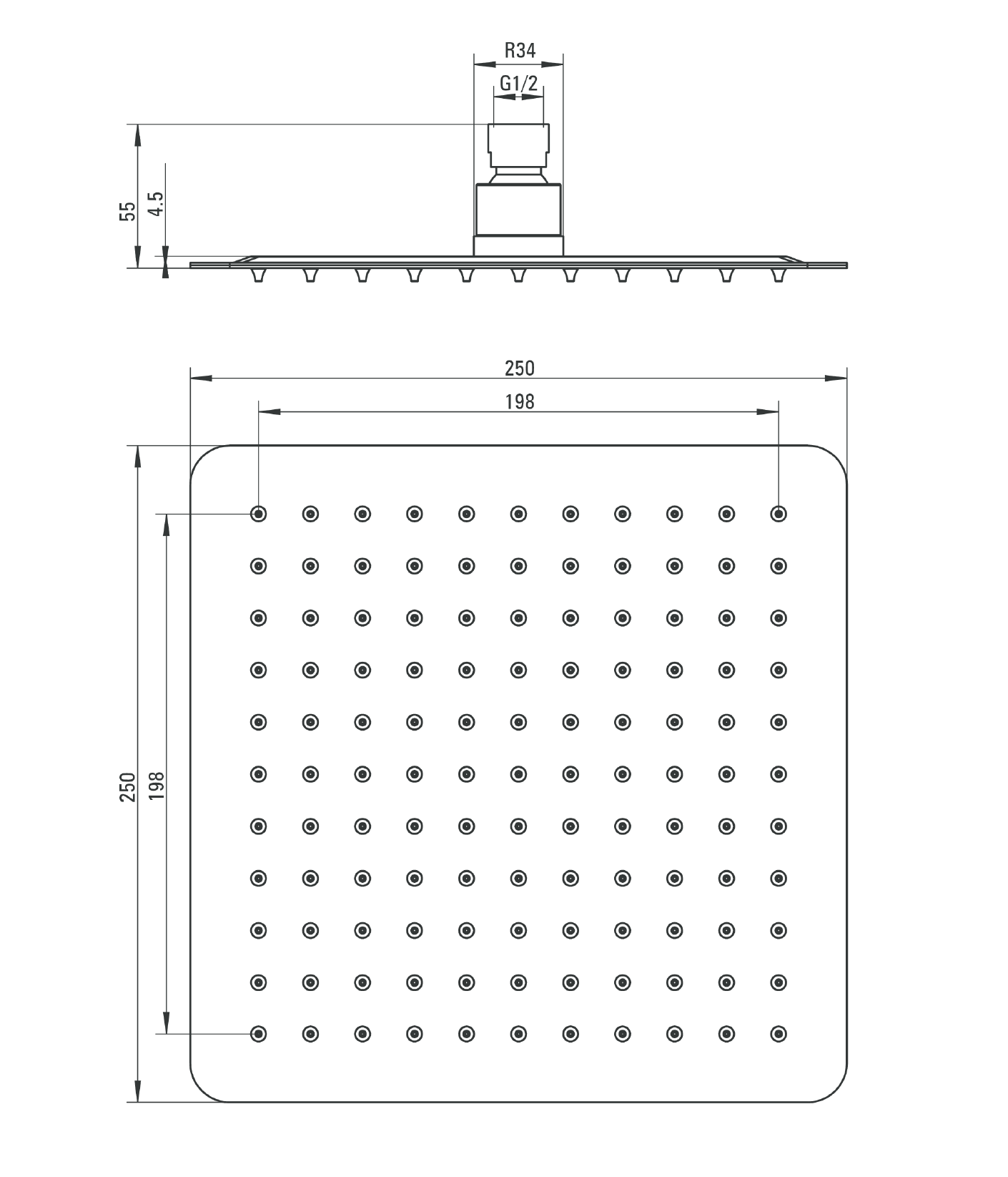Deszczownica natryskowa kwadratowa 25 cm chrom Deante Floks NAC 002K