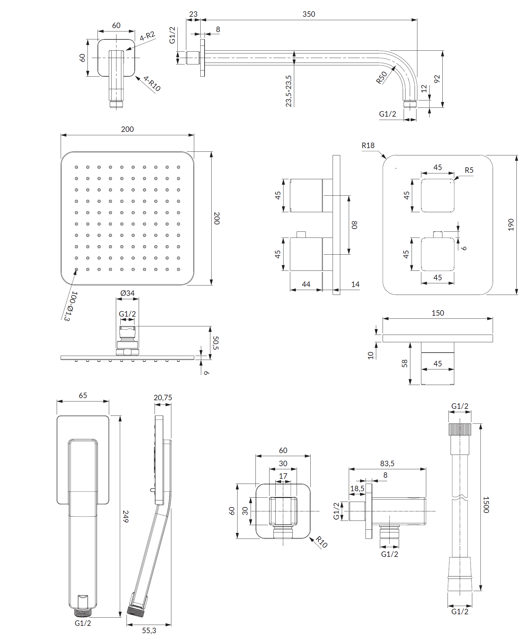 • rączka prysznicowa 3-funkcyjna JIMJIM-R (masaż, deszcz, mieszany)