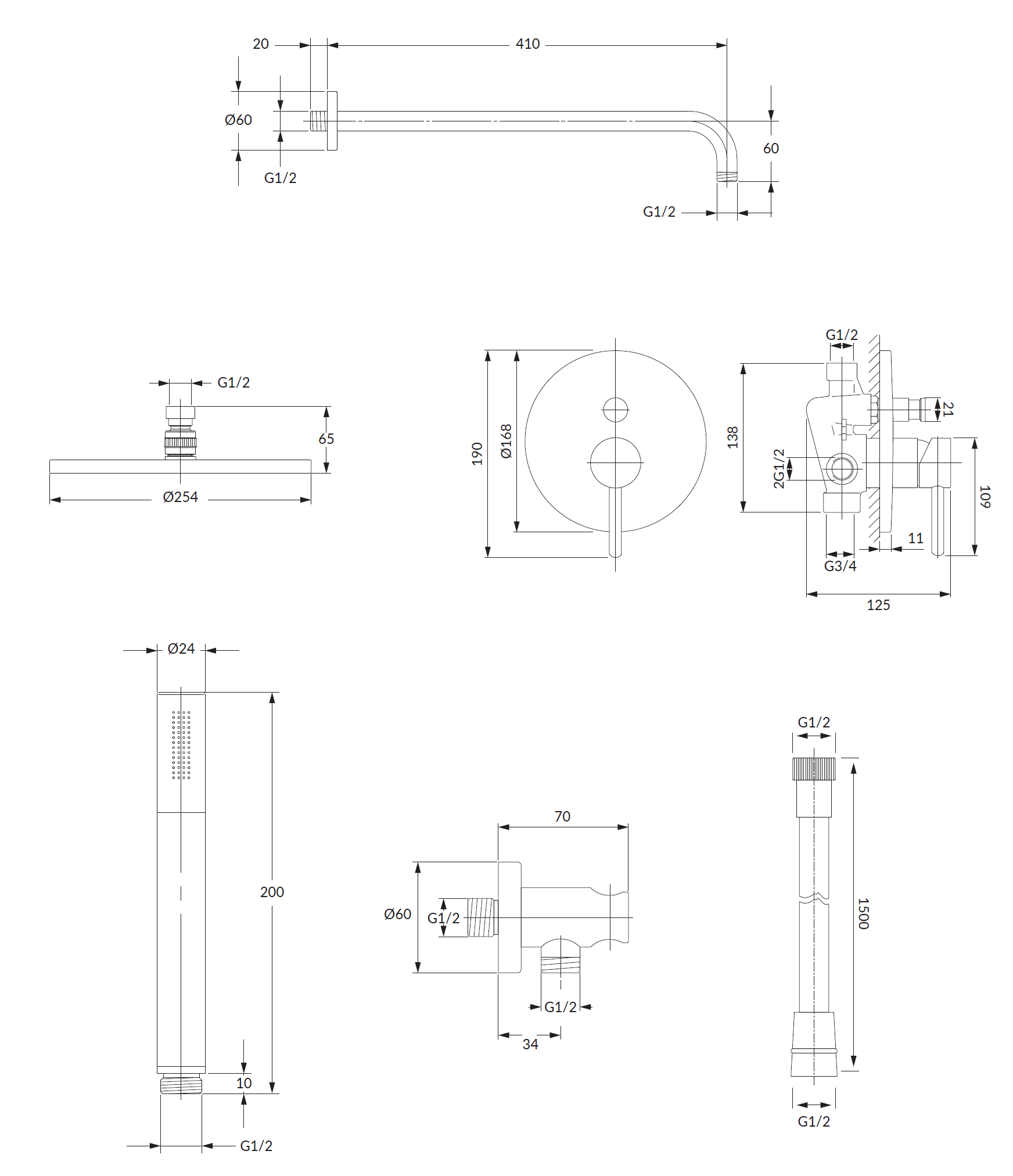 • Wąż prysznicowy:029GL 150 cm