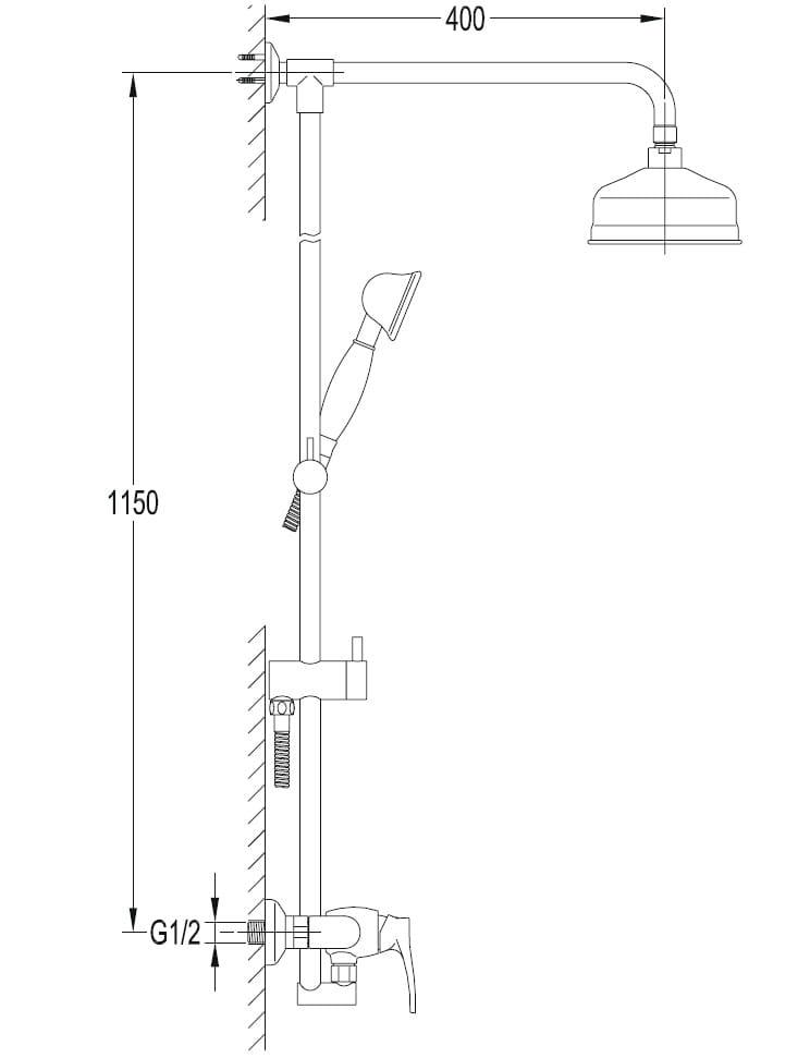 • Podłączenie prysznica: 1/2"