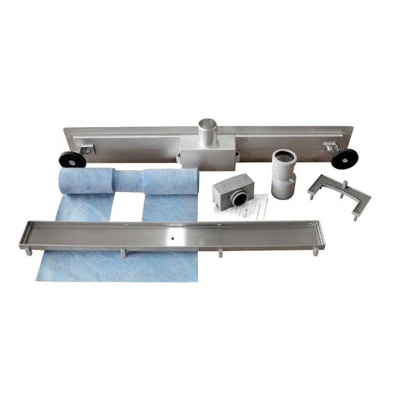 • W komplecie: kołnierz montażowy 2 cm, maskownice wyposażone w dystanse tłumiące hałas powstały przy opadaniu wody, syfon 40 mm czyszczony od góry oraz redukcja 50/40 mm, nóżki poziomujące, rura odpływowa o średnicy 40/50 mm