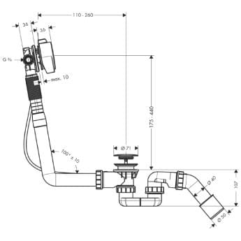Syfon ,komplet odpływowy z napełnianiem i przelewem do wanien standardowych Hansgrohe Exafill S 58113000
