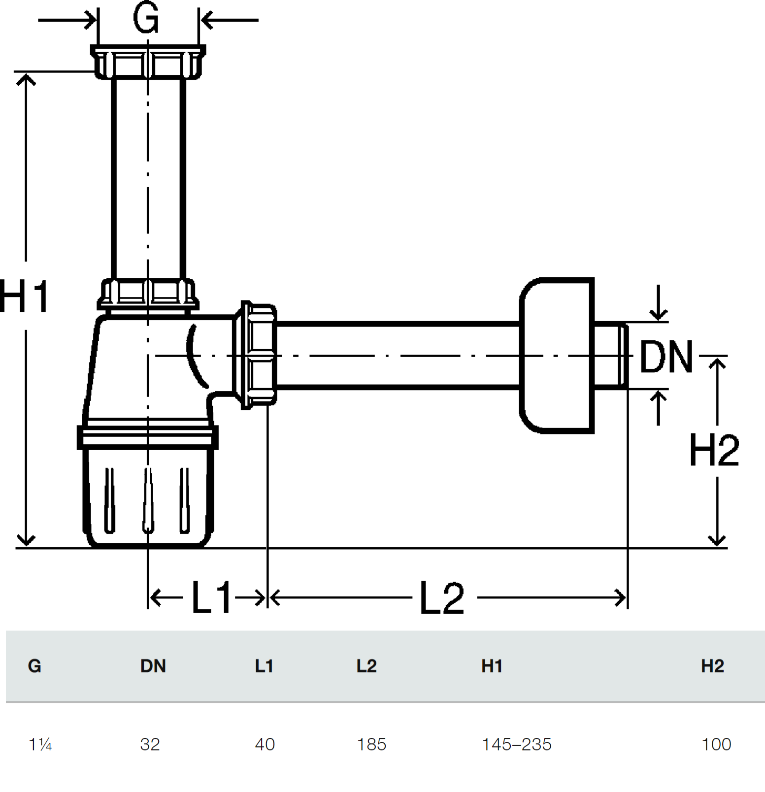 • przyłącze x odpływ - 1 1/4 x 32