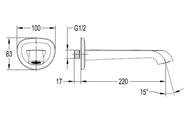 Wylewka naścienna, mosiężna Omnires Armance WDARMANCECR