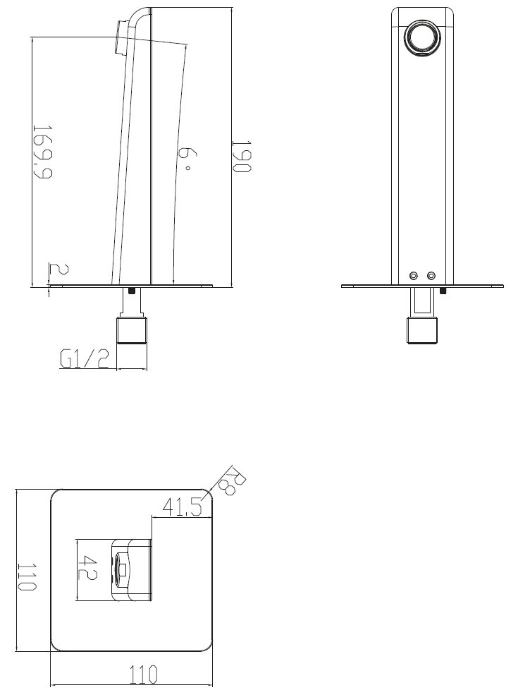 • Zasięg wylewki: 17 cm, rozmiar rozety: 11x11 cm