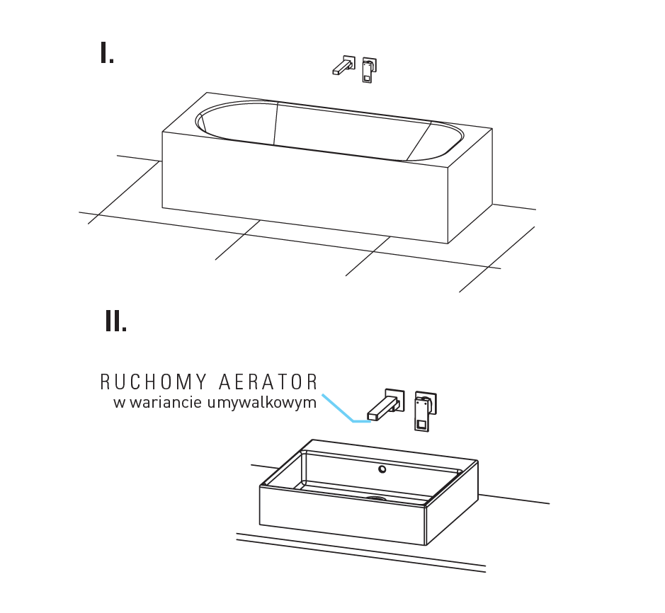 • składana wylewka zakończona aeratorem/ruchomy aerator w wariancie umywalkowym