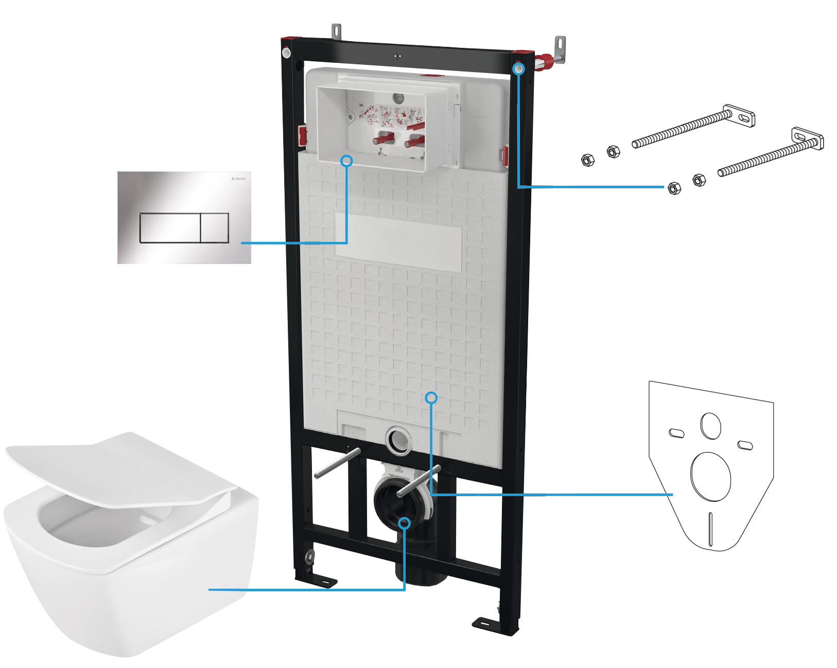Zestaw WC podtynkowy : miska, deska, stelaż, przycisk chrom połysk Deante Blur CDZS6ZPW