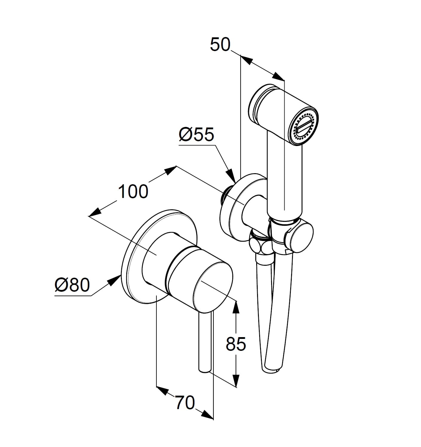 • przyłącze kątowe do węża natryskowego ze ściennym uchwytem natryskowym
