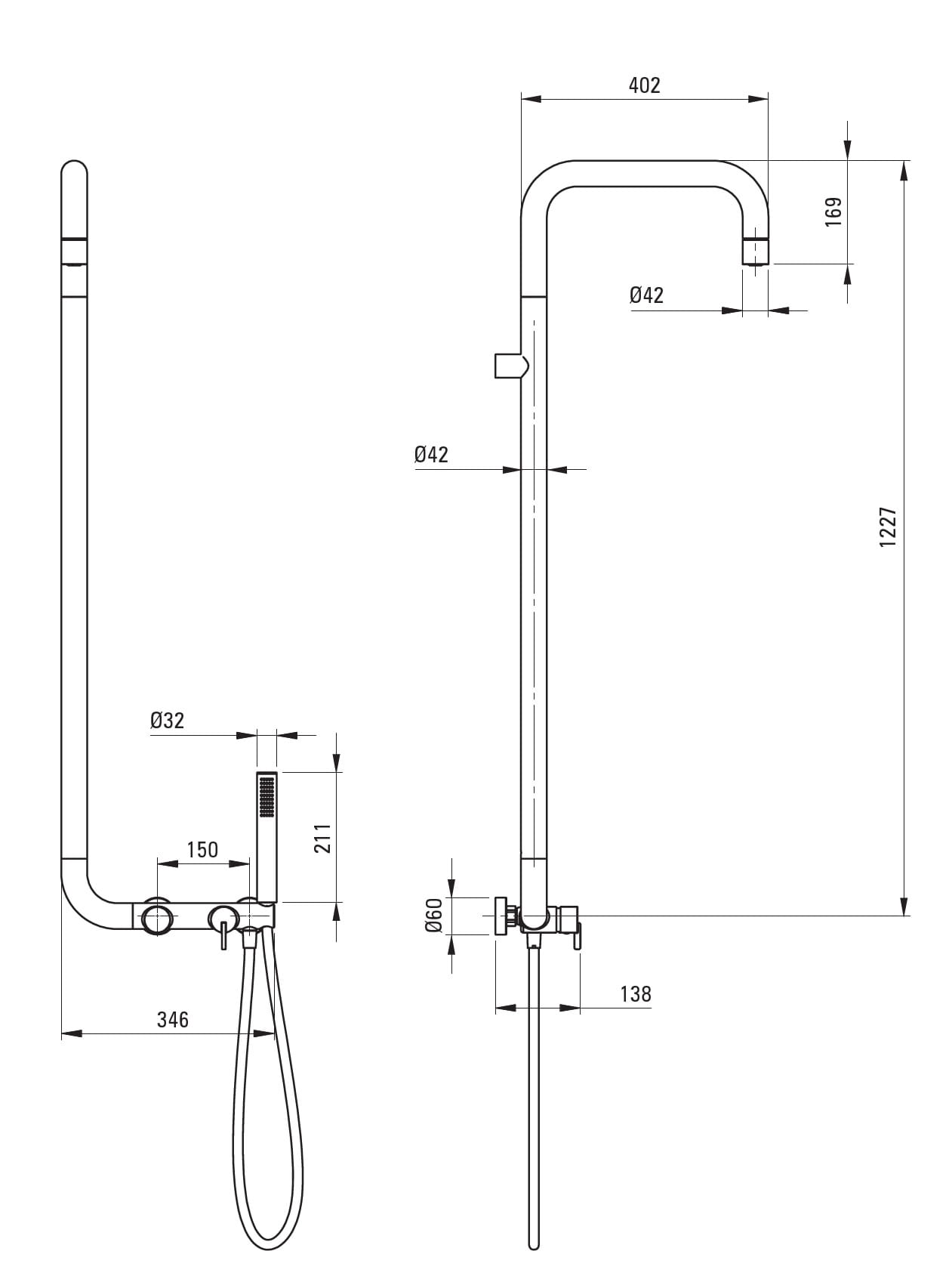 Zestaw prysznicowy natynkowy z baterią Deante Silia titanium DQS R4XM