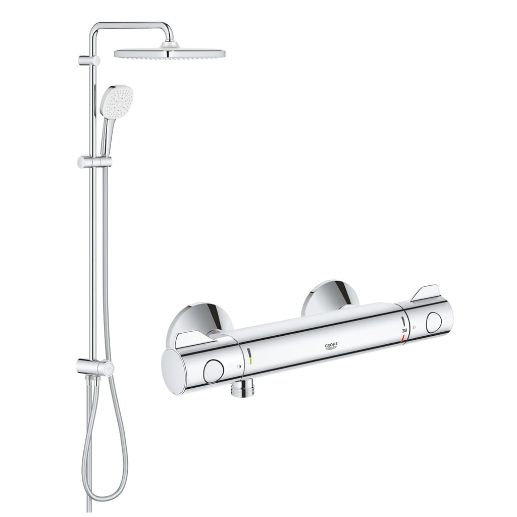 Zestaw prysznicowy natynkowy termostatyczny Grohe Grohtherm 800 z deszczownicą Tempesta System 250 Cube chrom 34558000 + 26694001
