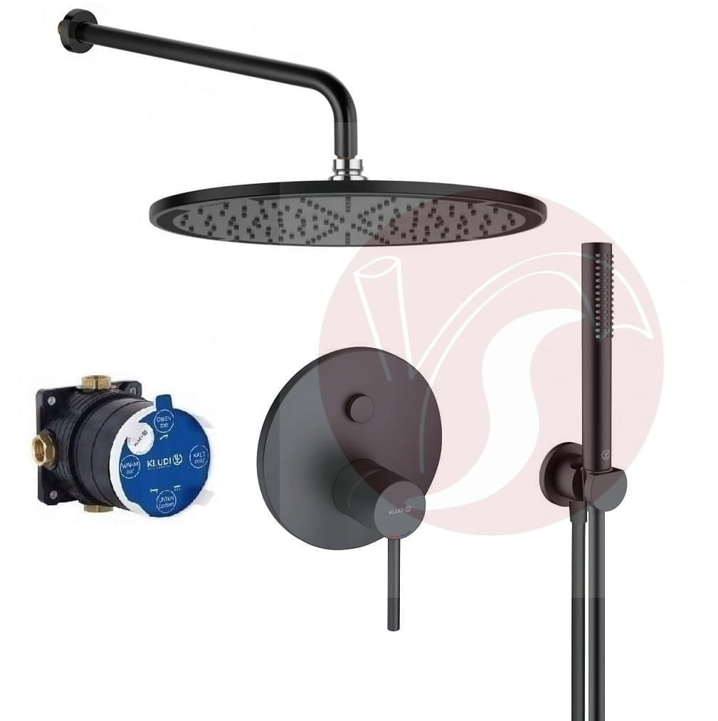 Zestaw prysznicowy podtynkowy KLUDI BOZZ PUSH & SWITCH 386593976 z deszczownicą KLUDI A-QA 30 cm czarny mat - 12680