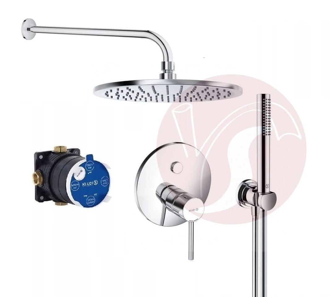 Zestaw prysznicowy podtynkowy bateria KLUDI BOZZ PUSH & SWITCH 386590576, słuchawka Kludi deszczownica Kludi 30 cm chrom - 12802