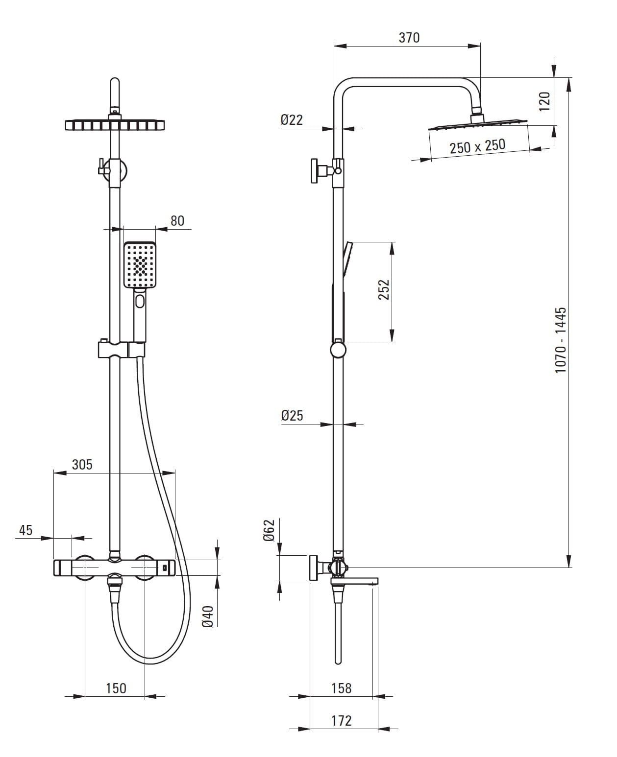 • Deszczownica Ultra cienka stal nierdzewna 25x25 cm, Anti-calc, strumień deszczowy