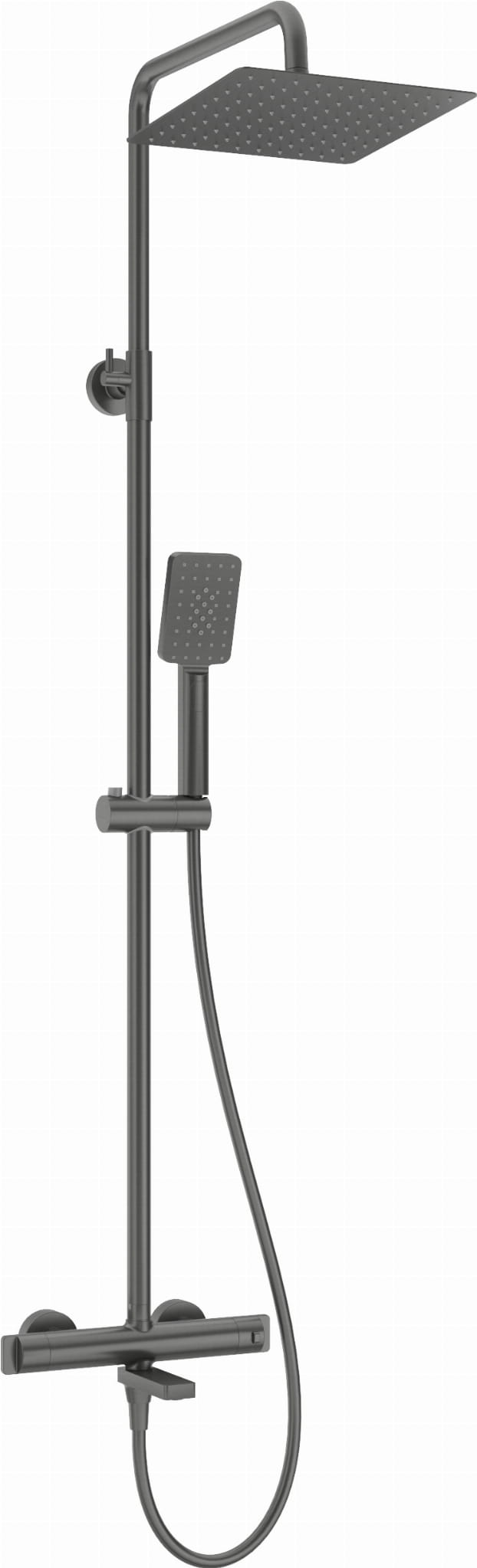 Zestaw wannowy natynkowy termostatyczny, składana wylewka, deszczownica 25 cm titanium Deante NAC D1HT