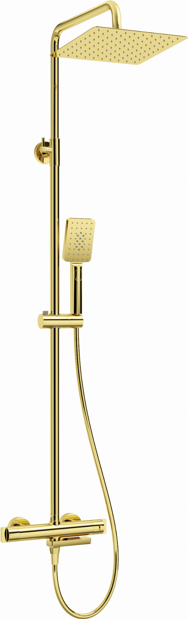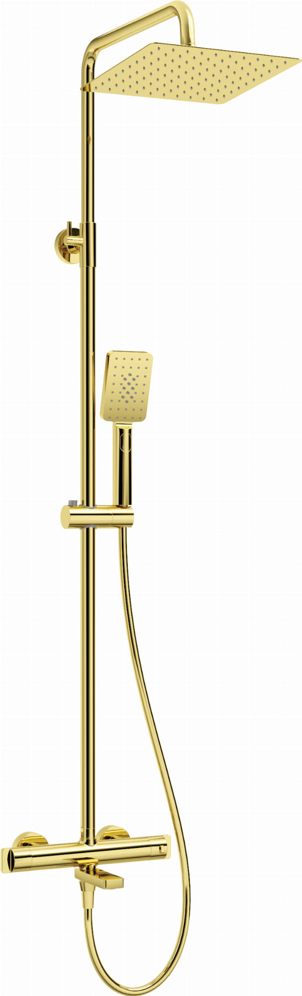 Zestaw wannowy natynkowy termostatyczny, składana wylewka, deszczownica 25 cm złoty Deante NAC Z1HT