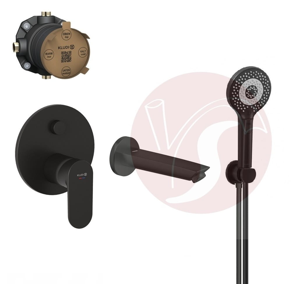 Zestaw wannowy podtynkowy z baterią Kludi X1 327593975, słuchawka Kludi 3-funkcyjna, wylewka Grohe 17 cm czarny mat - 12872